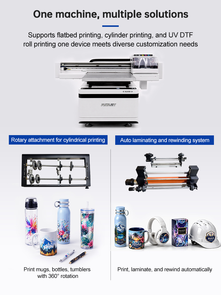 - Versatile Hybrid Function: Supports Flatbed, Roll-to-Roll, Crystal Label, and Cylinder printing in one machine.